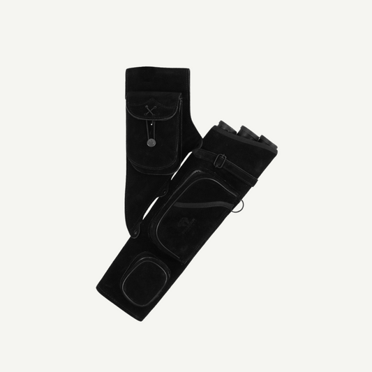 Der Rückenköcher ist wohl die klassischste Version im Bogensport. Er wird meist aus Leder oder Textil gefertigt in schlichten oder traditionellen Designs. Der Rückenköcher ist mit verstellbaren Schultergurten oder Dreipunktgurten ausgestattet, um ein Verrutschen auf dem Rücken zu verhindern.