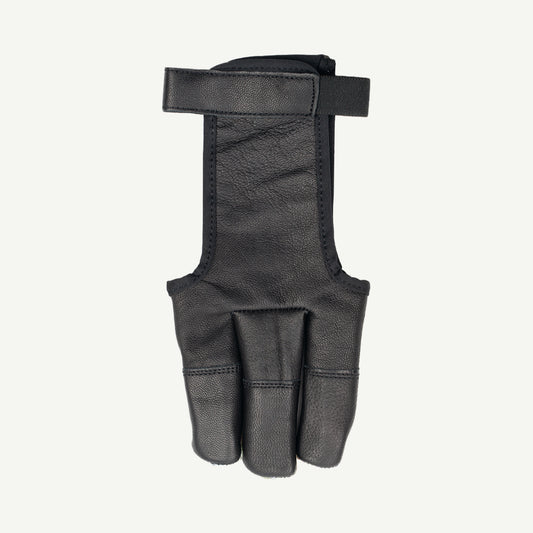 Ein Schießhandschuh ist wichtig im Bogensport, um die Bogensehne sicher und bequem zu ziehen. Er wird an der Zughand getragen und schützt die drei mittleren Finger: Zeige-, Mittel- und Ringfinger.
