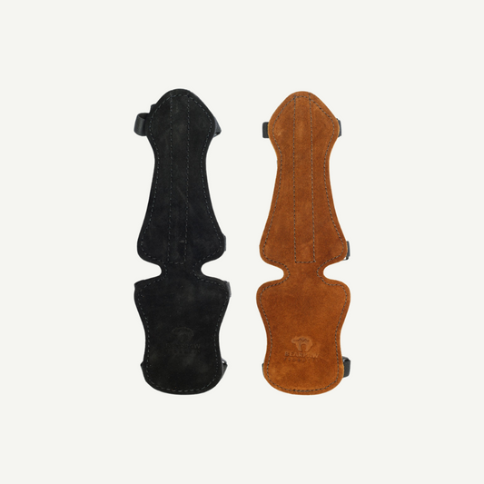 Der Fingertab ist typischerweise aus Leder gefertigt und speziell strukturiert: Er bietet eine Fläche für die drei Finger (Ring-, Mittel- und Zeigefinger), welche die Bogensehen ziehen. Ein separater Bereich und eine Kunststofftrennung zwischen Mittel- und Zeigefinger unterstützen das präzise Einnocken und Ausziehen des Pfeils. Verfügbar in verschiedenen Größen, Ausführungen (Rechts- oder Linkshand) und Materialien, kannst du den Fingertab wählen, der am besten zu deinen Vorlieben passt.