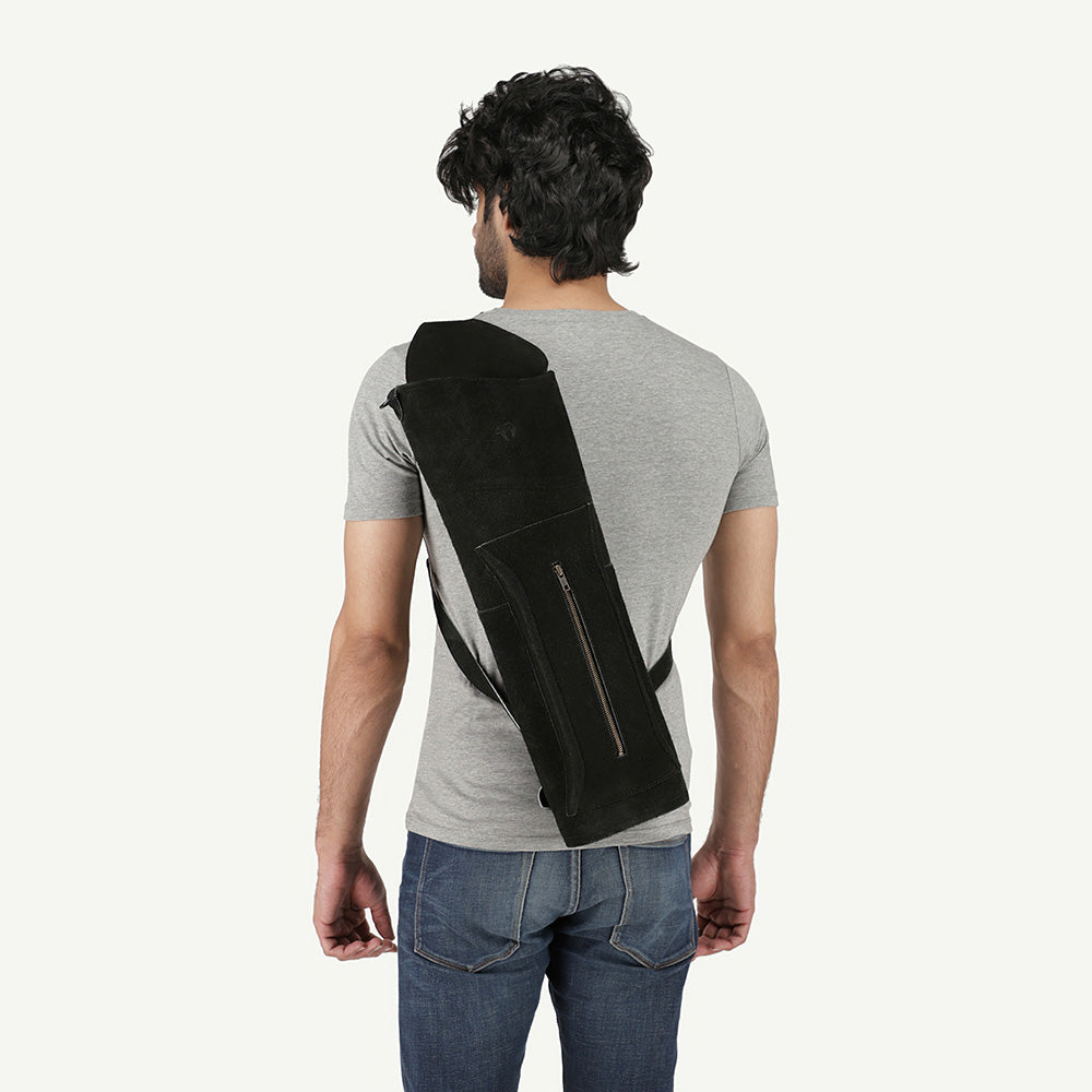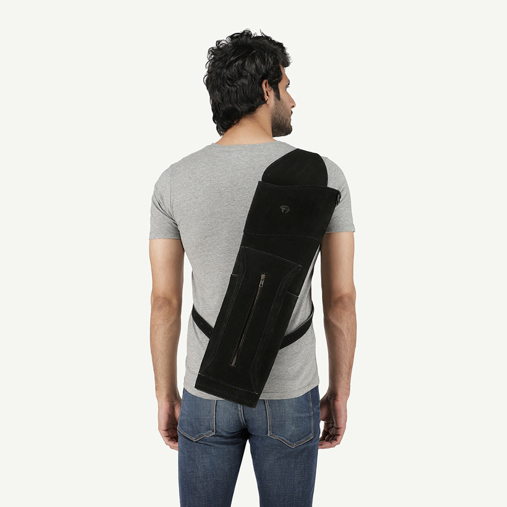 Ein Köcher in Vollendung.Der Rückenköcher Dark aus der Traditional Kollektion ist ein echter Blickfang. Er wird aus hochwertigem und REACH-konformen Rindswildleder gefertigt und erstrahlt in einem Tiefschwarz. Im Rückenköcher Dark findest Du sehr viel Platz für alle Deine Pfeile. Die großzügige Tasche an der Vorderseite ermöglicht es Dir, viele Utensilien (Handy, Schießhandschuh, Geldbeutel, etc.) zu verstauen. Das Besondere an dieser Tasche: Der Reißverschluss wurde mit einem hochwertigen „YKK“ Produkt perfekt abgerundet. Durch das 3-Punkt-Gurtsystem sitzt der Köcher sehr gut und lässt sich sicher tragen. Du bist Dir nicht sicher, wie der Köcher angelegt wird? Sieh dazu einfach in unserer Info-Broschüre nach. Der Rückenköcher Dark ist jeweils für Rechts- und Linkshandschützen verfügbar. Egal ob Einsteiger oder erfahrene Bogensportler: Der Rückenköcher Sun ist für alle bestens geeignet.