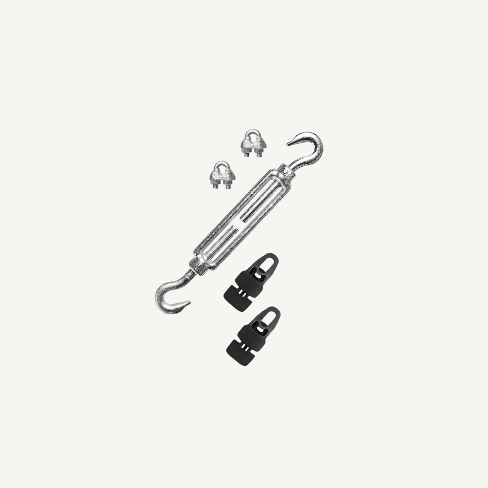 - Ein Spannschloss sowie eine Drahtseilklemme