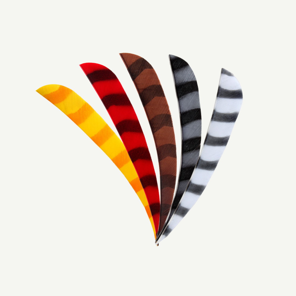 Federn mit barred Farbmustern verleihen Ihrem Pfeil ein besonderes Aussehen und werden von Bogenschützen auf der ganzen Welt zur Darstellung des eigenen Stils benutzt.