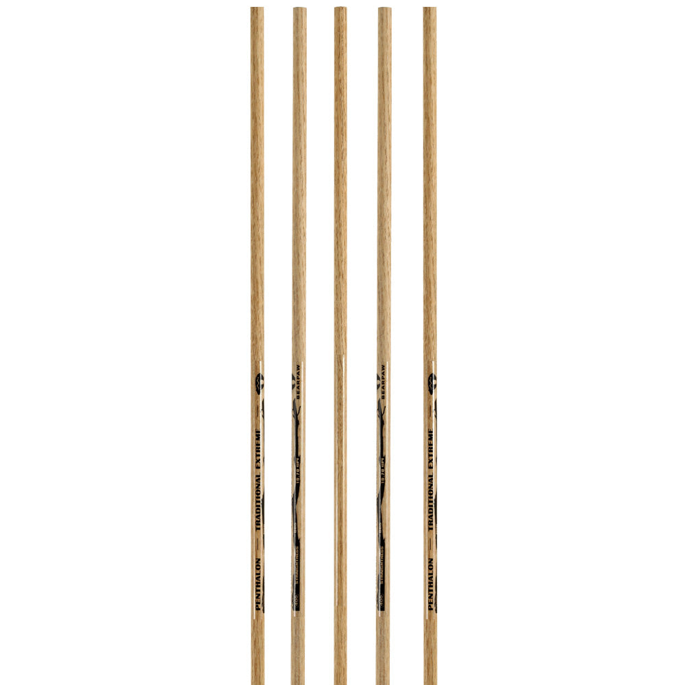 With these two terms you get right to the point of the characteristics of our Traditional Extreme Carbon shafts. In an elaborate manufacturing process we have equipped our tried and tested Penthalon Hunter Carbon shaft with a thin ash wood shroud. Our Penthalon Traditional Extreme is very difficult to distinguish from a pure wood shaft. In addition to superb looks the wood surface of this carbon shaft can be embellished as you would with a real wood arrow. Crowning, cresting and varnish are all possible. The Penthalon Traditional Extreme is extremely durable and sturdy!