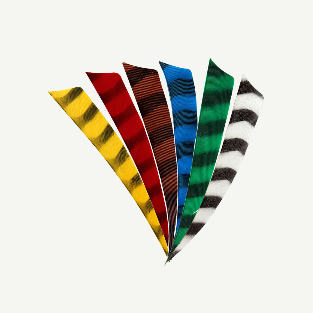 Our feathers with the barred color patterns give your arrow a special „classic“ look and are used by many archers around the world as a way to connect to the history of archery with the classic look and feel barred feathers provide.