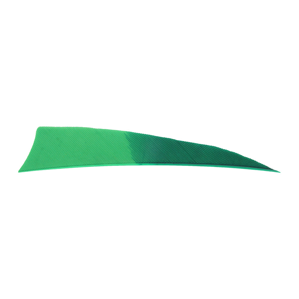 Feathers in the length of 4 inches are normally used for arrows that will be shot from more powerful bows. They stabilize arrows quickly and reliably. We have used a flatter profile in our Shield shape to perfectly optimize stabilization and arrow speed.