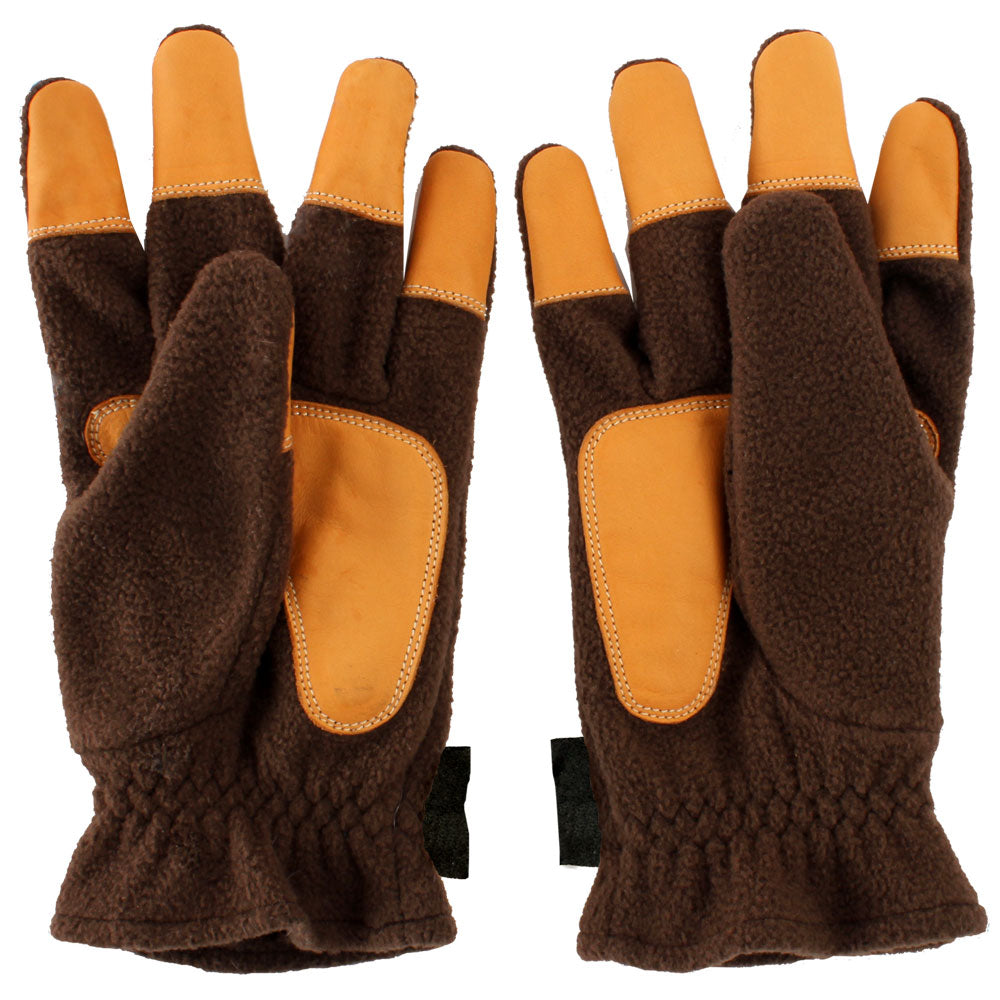 The gloves turn out a size bigger than our leather gloves. Due to this we recommend one size smaller. - Glove Material: Soft Warm Winter Fleece
