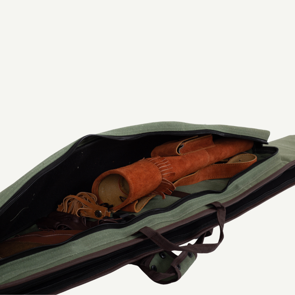 An extremely classy bow bag with exclusive looks! The thick cotton fabric is of an extremely high quality to protect the bow from bumps and damage. The bag has a nice thick lining and a large external pocket for securely storing an arrow tube and accessories.